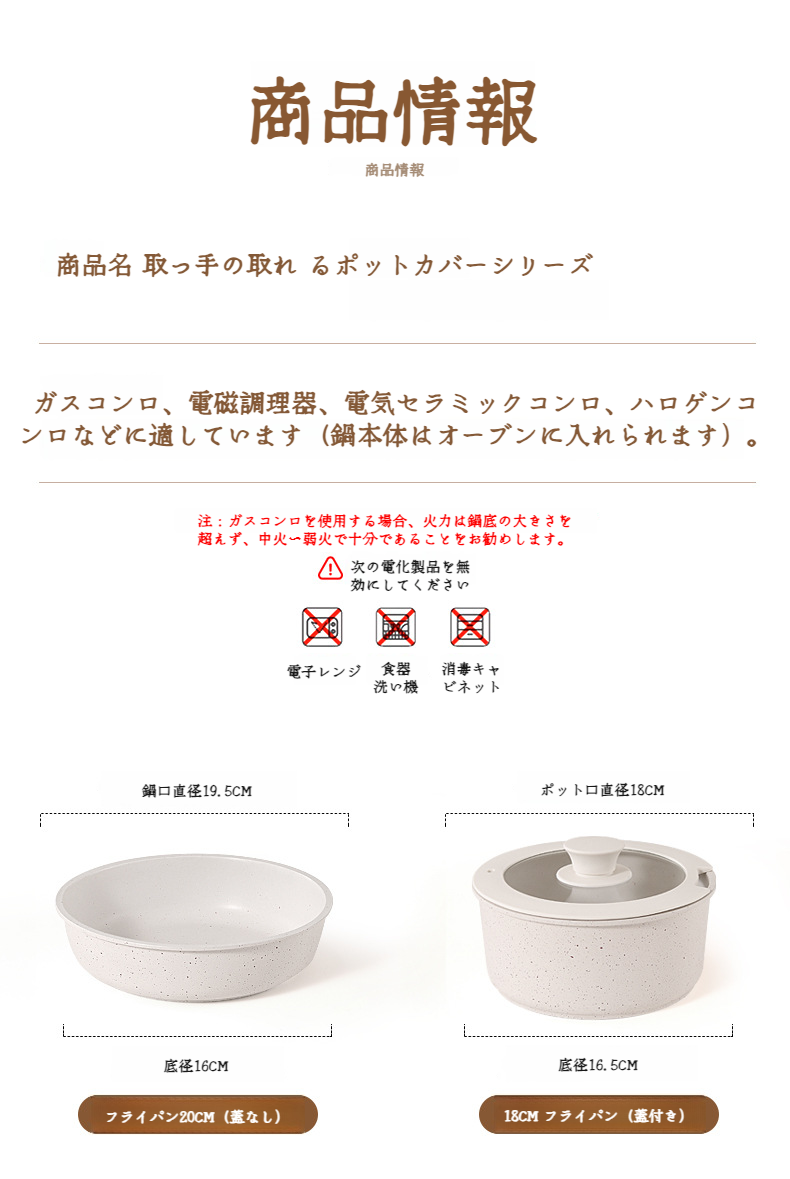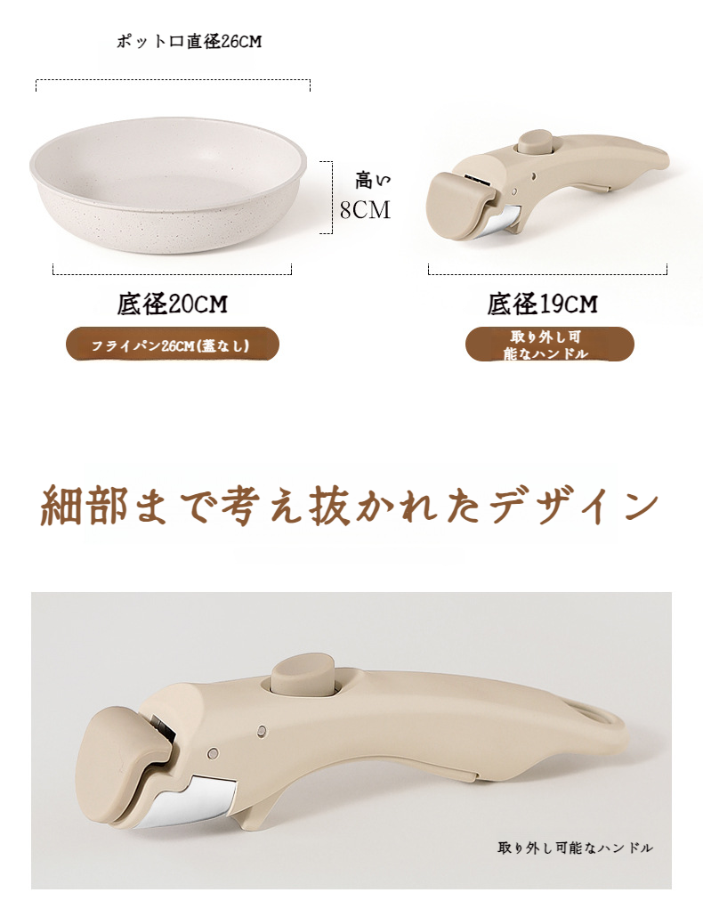 家庭用ノンスティックフライパン ガスコンロやIHクッキングヒーターに適した 底が平らな麦飯石製の取り外し可能なフライパン